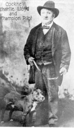Keywords: Cockney Charlie.jpg bild på Cockney Charlie med sin hund Pilot The dog is a Staffordshire bull terrier http //www warpittstaffords com/history html datum okänt men troligen år 1881 okänd skapare bilden florerar fritt på nätet jag är en av personerna bakom sidan som bilden är länkad till PD-old-70-1923 Staffordshire Bull Terrier Immigrants to the United States from the United Kingdom |