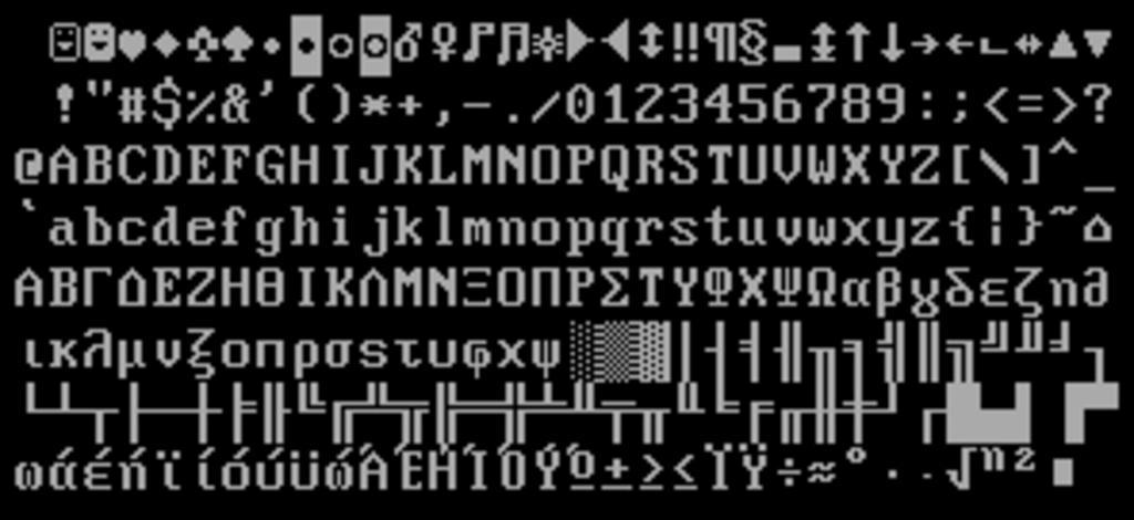 | Keywords: Codepage-737.png code page 737 as should be displayed by VGA with 9×16 glyphs Letters Ϊ and Ϋ are self-made as available fonts lacked them own using a self-made program and gr8x16 psf gz from console-tools which I hope is in the public domain 2011-06-27 Incnis Mrsi <span class signature-talk >talk</span> similar image for CP850 similar but genetically unrelated image for CP437 Character sets Greek alphabet Fonts for computer monitor displays Bitmap fonts | ||||