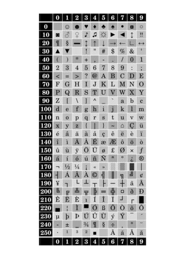 Keywords: Codepage 850 dezimal.svg en Table with the characters 0 - 259 of codepage 850 in decimal numeration de Tabelle mit den Zeichen 0 - 259 des Codepage 850 in dezimaler Zählweise own Ein Nutzer mit einem langen Namen 2016-03-03 Cc-zero Character sets Fonts for computer monitor displays |