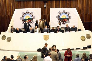 Keywords: códifo florestal códifoflorestal assembleia legislativa do paraná assembleialegislativadoparaná reforma agrária reformaagrária indoor O novo Código Florestal brasileiro foi tema do encontro que mobilizou o Poder Legislativo paranaense nessa sexta-feira (19). A Assembleia Legislativa serviu de sede para o 16º Seminário do Ciclo de Debates promovido pela Comissão de Agricultura e Reforma Agrária (CRA) do Senado Federal, sobre o Projeto de Lei nº 30/11, oriundo da Câmara Federal. Contou com as presenças dos senadores Sérgio Souza (PMDB-PR), Luiz Henrique (PMDB-SC) e Acir Gurgacz (PDT-RO), além de deputados estaduais e federais do Paraná. Foto: Nani Gois/Alep (crédito obrigatório) O novo Código Florestal brasileiro foi tema do encontro que mobilizou o Poder Legislativo paranaense nessa sexta-feira (19). A Assembleia Legislativa serviu de sede para o 16º Seminário do Ciclo de Debates promovido pela Comissão de Agricultura e Reforma Agrária (CRA) do Senado Federal, sobre o Projeto de Lei nº 30/11, oriundo da Câmara Federal. Contou com as presenças dos senadores Sérgio Souza (PMDB-PR), Luiz Henrique (PMDB-SC) e Acir Gurgacz (PDT-RO), além de deputados estaduais e federais do Paraná. Foto: Nani Gois/Alep (crédito obrigatório) |