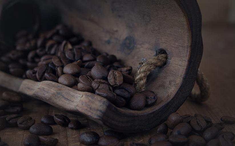 Keywords: coffee coffee beans roasted brown natural product caffeine wooden shovel close
