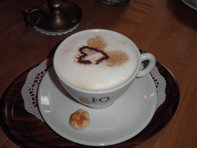 Keywords: coffee cup café au lait biscuit ornament beverages milchschaum heart cafe drink cup