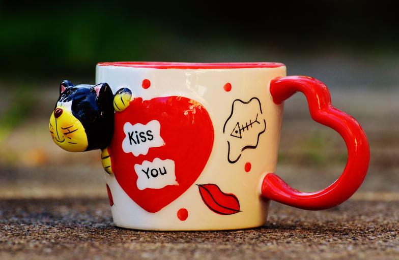 Keywords: coffee cup funny cat heart love kiss teacup cup drink enjoy coffee tee benefit from break hot drink tea time
