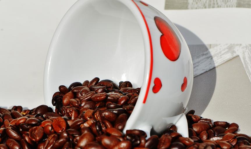 Keywords: coffee for two love heart cup valentine's day enjoy benefit from coffee beans coffee cup romance beans espresso roasted aroma caffeine brown still life break drink porcelain good morning cafe fragrance breakfast drink coffee food