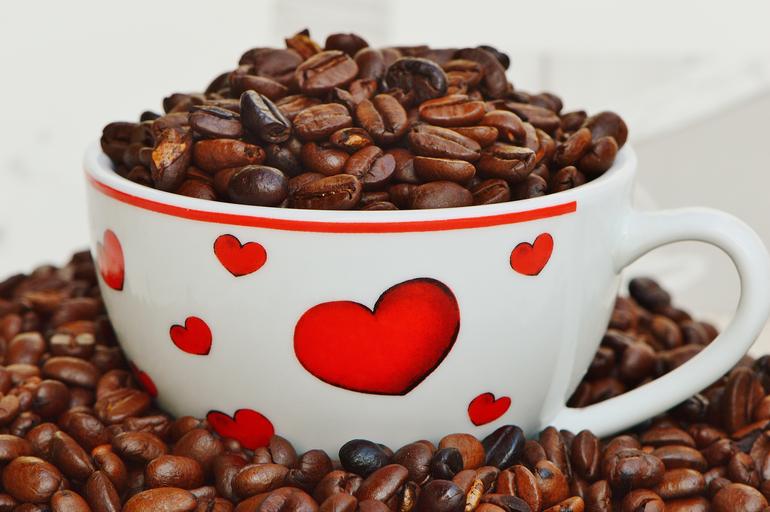 Keywords: coffee for two love heart cup valentine's day enjoy benefit from coffee beans coffee cup romance beans espresso roasted aroma caffeine brown still life break drink porcelain good morning cafe fragrance breakfast drink coffee food