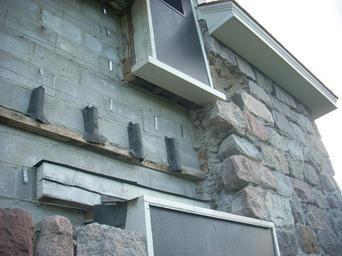 | Keywords: Coghlan Castle, Rolette County, ND.jpeg en Detail of reconstruction work on South Elevation of Coghlan Castle a property listed on the National Register of Historic Places located in Rolette County ND The original stonework on this side had deteriorated severely neccesitating the rebuilding of the wall using concrete masonry units skinned with the original facing stones own Glorioussandwich 2010-07-30 glorioussandwich glorioussandwich Rolette County North Dakota Houses on the National Register of Historic Places in North Dakota Stone houses in the United States Castles in the United States |