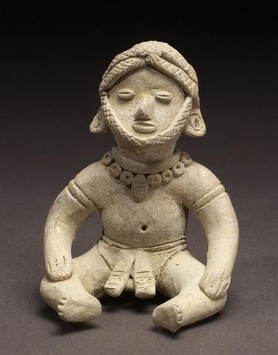 | Keywords: Colima - Group of Figurines and Architectural Model - Walters 20092033.jpg Narrative groupings of figurines in architectural settings have been found throughout Mesoamerica in contexts dating as early as the Middle Formative Period 900-400 BCE Some are made from jadeite and similar precious stones such as an Olmec ceremonial scene of sixteen figurines arranged in a semicircle and framed by six column-like celts Others are composed of modeled ceramic figures depicting a burial or ancestor veneration rite complete with elaborately dressed performers and musicians like that found above Tomb 103 at Monte Albán Oaxaca The objects that constitute these figure groups generally share the same aesthetic style and manufacturing technique which suggests they were made at the same time as a single artistic statement The disparate artistic styles and technical features suggest that these nine Colima figurines and one building model might be a modern grouping although dissimilar figurines have been documented in figure groupings found in the same tomb In this instance archaeological confirmation is not available The figurine types represent at least two styles from Colima-Jalisco including the Tuxcacuesco-Ortices type nos 33 3 33 8 and 33 9 and two from the Colima-Jalisco border region nos 33 4 and 33 5 The house model no 33 1 depicts a typical West Mexican domicile or ceremonial building without its basal earthen platform No architecture of comparable form is found in the region because these structures were made of perishable materials; only the earth-and-stone platforms have survived although many have been destroyed by modern agricultural activities These architectural models thus document the lost architectural heritage of ancient West Mexico The figures portray men and women performing both ritual and daily activities from mothers tending children nos 33 3 and 33 8 and grinding maize no 33 7 to men drumming no 33 6 or sitting regally and brandishing a fanlike scepter no 33 9 A seated hunchback figure which also is a whistle sports an elaborate head wrap and fine jewelry no 33 10 A dog-standing-atop-a-dog sculpture and two seated men with elongated heads complete the group nos 33 2 33 4 and 33 5 This elongated-head figurine style is associated with the northern Colima-Jalisco region and dates to the later years of the Comala phase ca 200-300 CE 200 BC-AD 400 earthenware 1 cm 16 9 13 1 13 7 ; 2 H 3 3/4 x L 3 13/16 x W 2 1/16 in 9 5 x 9 7 x 5 3 cm ; 3 cm 10 3 7 7 4 8 ; 4 cm 7 1 4 1 2 3 ; 5 cm 7 3 4 7 2 3 ; 6 cm 9 1 6 2 6 3 ; 7 cm 14 6 7 8 12 7 ; 8 cm 12 1 8 4 5 5 ; 9 cm 8 9 6 9 10 1 ; 10 cm 7 5 1 5 2 accession number 2009 20 33 80188 John G Bourne date and mode of acquisition unknown Walters Art Museum Gift of John Bourne 2009 place of origin Colima Mexico Walters Art Museum license Objects from Colima in the Walters Art Museum Media contributed by the Walters Art Museum needs category review |