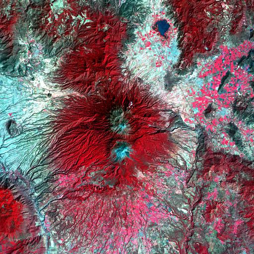 Keywords: texture abstract bright Snow-capped Colima Volcano, the most active volcano in Mexico, rises abruptly from the surrounding landscape in the state of Jalisco. Colima is actually a melding of two volcanoes, the older Nevado de Colima to the north and the younger, historically more active Volcan de Colima to the south. Legend has it that gods sit atop the volcano on thrones of fire and ice. This scene was acquired on February 6, 2003, by the ASTER instrument aboard NASA's Terra satellite. (Credit: NASA/U.S. Geological Survey) Snow-capped Colima Volcano, the most active volcano in Mexico, rises abruptly from the surrounding landscape in the state of Jalisco. Colima is actually a melding of two volcanoes, the older Nevado de Colima to the north and the younger, historically more active Volcan de Colima to the south. Legend has it that gods sit atop the volcano on thrones of fire and ice. This scene was acquired on February 6, 2003, by the ASTER instrument aboard NASA's Terra satellite. (Credit: NASA/U.S. Geological Survey) |