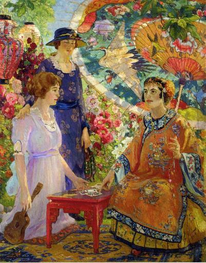 Keywords: Colin Campbell Cooper, Fortune Teller.jpg en Fortune Teller Colin Campbell Cooper oil on canvas 46 x 36 25 in http //www the-athenaeum org/art/detail php ID 32558 Creator Colin Campbell Cooper 1921 PD-old Colin Campbell Cooper Parasols in art Fortune-telling in art 1921 paintings Women in art Fashion in 1921 Images from the-athenaeum org Three women in art China in art |