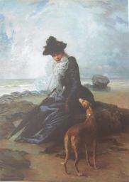 Keywords: Collazo, Guillermo, Dama sentada a orillas del mar.jpg Dama sentada a orillas del mar 1891 oil on canvas Institution Museo Nacional de Bellas Artes de Cuba Havana accession number object history credit line postcard sent to Henry Townsend by Frankie deFreitas PD-old-100 Photo 19th-century greyhounds in art Greyhounds in art in landscapes Guillermo Collazo Cuban paintings in the Museo Nacional de Bellas Artes Cuba Paintings of women with dogs