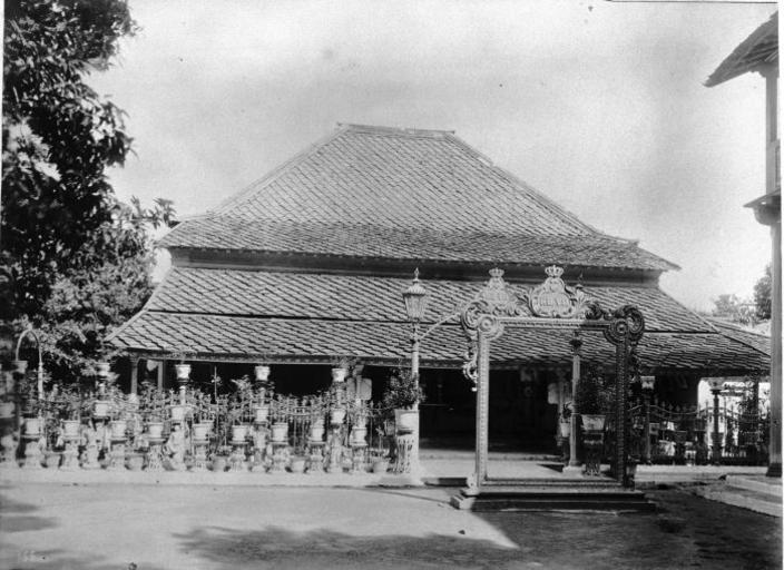 Keywords: COLLECTIE TROPENMUSEUM Het particuliere ontvangstgebouw Gedung Kuning in de kraton van Sultan Hamengko Boewono VII in Djokjakarta. TMnr 60004761.jpg nl Foto Het particuliere ontvangstgebouw Gedung Kuning in de kraton van Sultan Hamengko Boewono VII in Djokjakarta en Photograph by Kassian Cephas - of a display in front of the Yellow Pavilion in the Kraton of Sultan Hamengkoboewono VII in Yogyakarta ca 1890 institution Tropenmuseum KIT-source 60004761 Creator Kassian Cephas KIT-license PD-old-100 Images from KIT Voorstelling Activiteit / Functie - dakbedekking Images from KIT Voorstelling Activiteit / Functie - toegang Images from KIT Voorstelling Activiteit / Functie - siervoorwerpen decoratieve voorwerpen Lamp posts in Indonesia z Photographs by Kassian Cephas Kraton of Yogyakarta Black and white photographs |