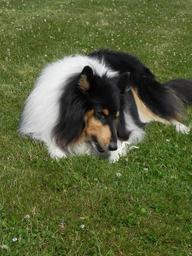Keywords: collie tricolor three coloured dog purebred dog animal furry playful animal portrait pet garden eat summer concerns wildlife photography
