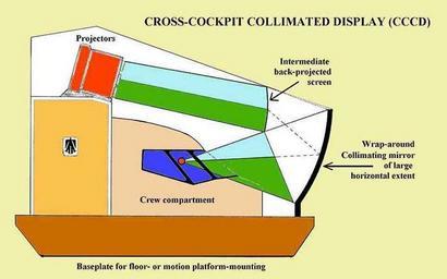 Keywords: Collimated display from side.jpg Collimated display from side svg en Side view of a flight simulator cross-cockpit collimated visual display system The principle was developed by the Rediffusion company Crawley UK now part of the Thales Group in 1982 and is now used by many other flight simulator manufacturers Own Ian W Strachan 2007-05-03 Flight simulators |