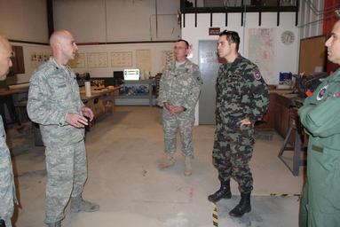 Keywords: Coloarado - Slovenia 01.jpg en Lt Col John Stevenson 140th Operation Support Squadron Airburst Range commander left center Stevens Capt Perry Read center and Slovenian armed Forces Sgt 1st Class Darko Roth right center discuss training range management and how the Colorado Airmen manufacture their own training assets such as targets during a State Partnership Program visit to the 140th Operations Squadron's Airburst Range at Fort Carson Colo Oct 31 2012 The CONG and the Republic of Slovenia have been partner nations since 1993 when the program began In addition to many other milestones in the program Citizen-Soldiers from the CONG and soldiers from Slovenia have deployed together many times as members of the Operational Mentor Liaison Teams now called Military Assistance Teams to help train soldiers of the Afghan National Army 2012-10-31 23 10 47 http //co ng mil/News/Pages/121101-range aspx Army National Guard Officer Candidate Jennings Catlett PD-USGov Uploaded with UploadWizard Military history of the United States Fort Carson U S European Command State Partnership Program Colorado National Guard Military of Slovenia |