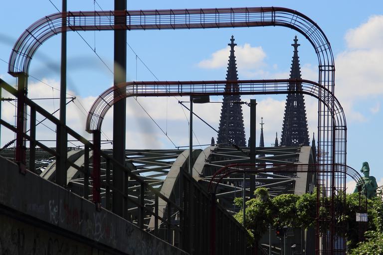 Keywords: cologne cathedral cologne train dom contrast building perspective bridge germany