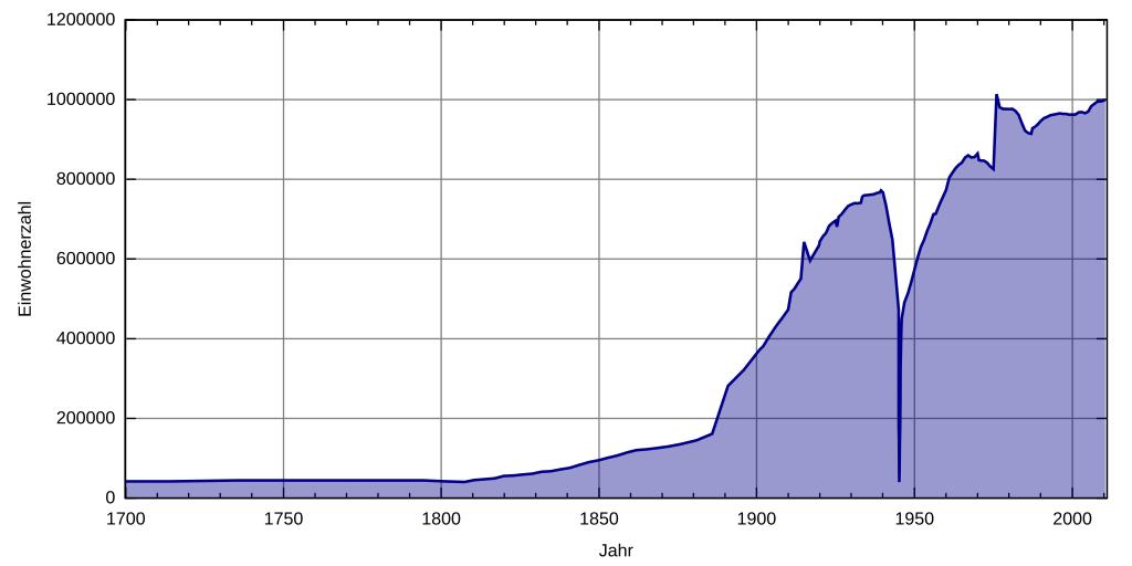 | Keywords: Cologne population.svg en Cologne population statistics since 1700 de Einwohnerentwicklung von Köln seit 1700 own ; data from Einwohnerentwicklung von Köln Gorgo 2011-03-06 Other fields G v + /usr/bin/gnuplot gnuplot 4 2 / Ubuntu 8 10 input set timefmt d m Y set datafile separator ; output unset key set style data lines set style fill transparent solid 0 4 set grid set xdata time set xlabel 'Jahr' set xrange '01 01 1700' '31 12 2010' set xtics 1576800000 set mxtics 5 set format x ' Y' set ylabel 'Einwohnerzahl' set ytics 200000 set format y ' 0f' set term svg size 800 400 font Arial 10 set output 'cologne_population svg' plot '-' using 1 2 with filledcurves below x1 lt rgb 'dark-blue' lw 2 30 06 50;30000 30 06 250;15000 30 06 350;15000 30 06 1140;20000 30 06 1430;40000 30 06 1600;40000 30 06 1714;42015 30 06 1735;44568 30 06 1794;44512 30 06 1801;42024 30 06 1807;40400 30 06 1810;45029 01 12 1816;49276 01 12 1819;55355 01 12 1822;56527 01 12 1825;59049 01 12 1828;61059 01 12 1831;65953 03 12 1834;67302 03 12 1837;72237 03 12 1840;75858 03 12 1843;83418 03 12 1846;90246 03 12 1849;94789 03 12 1852;101091 03 12 1855;106852 03 12 1858;114477 03 12 1861;120568 03 12 1864;122162 03 12 1867;125172 01 12 1871;129233 01 12 1875;135371 01 12 1880;144772 01 12 1885;161401 01 12 1890;281681 02 12 1895;321564 01 12 1900;372229 31 12 1901;380518 31 12 1902;392882 31 12 1903;406420 31 12 1904;417480 01 12 1905;428722 31 12 1906;440376 31 12 1907;451134 31 12 1908;461891 31 12 1909;472649 01 12 1910;516527 31 12 1911;525671 31 12 1912;538302 31 12 1913;550540 31 12 1914;642848 01 12 1916;595853 05 12 1917;609244 08 10 1919;633904 31 12 1919;644206 31 12 1920;657175 31 12 1921;665629 31 12 1922;683363 31 12 1923;690605 31 12 1924;696168 16 06 1925;680704 31 12 1925;705477 31 12 1926;713633 31 12 1927;723753 31 12 1928;733075 31 12 1929;736914 31 12 1930;740082 31 12 1931;739726 31 12 1932;741283 16 06 1933;756605 31 12 1933;759648 31 12 1934;760422 31 12 1935;761263 31 12 1936;762154 31 12 1937;765468 31 12 1938;767102 17 05 1939;772221 31 12 1939;767222 31 12 1940;733500 31 12 1941;690000 31 12 1942;648200 31 12 1943;561600 31 12 1944;472900 01 01 1945;177700 01 02 1945;152000 01 03 1945;140000 01 04 1945;169000 01 05 1945;138500 01 06 1945;175000 01 07 1945;250000 01 08 1945;324800 01 09 1945;359200 01 10 1945;398800 01 11 1945;423200 01 12 1945;447000 31 12 1945;453566 29 10 1946;491380 31 12 1946;494815 31 12 1947;515355 31 12 1948;543765 31 12 1949;573557 13 09 1950;594941 31 12 1950;603283 31 12 1951;630232 31 12 1952;647540 31 12 1953;670031 31 12 1954;688765 31 12 1955;712561 25 09 1956;713505 31 12 1956;718722 31 12 1957;737991 31 12 1958;756203 31 12 1959;773280 31 12 1960;803616 06 06 1961;809247 31 12 1961;816542 31 12 1962;827659 31 12 1963;835832 31 12 1964;842061 31 12 1965;854479 31 12 1966;860200 31 12 1967;854717 31 12 1968;855886 31 12 1969;864754 27 05 1970;848352 31 12 1970;847037 31 12 1971;846479 31 12 1972;841537 31 12 1973;832396 31 12 1974;825792 31 12 1975;1013771 31 12 1976;981021 31 12 1977;976761 31 12 1978;976534 31 12 1979;976136 31 12 1980;976694 31 12 1981;971403 31 12 1982;961777 31 12 1983;940663 31 12 1984;922286 31 12 1985;916153 31 12 1986;914336 25 05 1987;928309 31 12 1987;930907 31 12 1988;937482 31 12 1989;946280 31 12 1990;953551 31 12 1991;956690 31 12 1992;960631 31 12 1993;962517 31 12 1994;963817 31 12 1995;965697 31 12 1996;964346 31 12 1997;964311 31 12 1998;962580 31 12 1999;962507 31 12 2000;962884 31 12 2001;967940 31 12 2002;968639 31 12 2003;965954 31 12 2004;969709 31 12 2005;983347 31 12 2006;989766 31 12 2007;995397 31 12 2008;995420 31 12 2009;998105 31 12 2011;1017155 e Cc-zero Temporal population graphs of North Rhine-Westphalia History of Cologne |