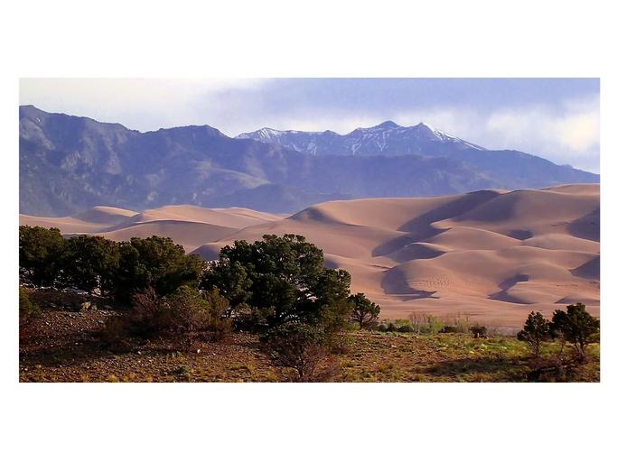 Keywords: colorado great dunes national park sand dunes mountains landmark landscape scenic trees sky clouds