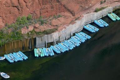 Keywords: colorado river glen canyon arizona usa blue rubber boats rafting boats river rafting adventure sport outdoor activity outdoor scenery landscape fun water