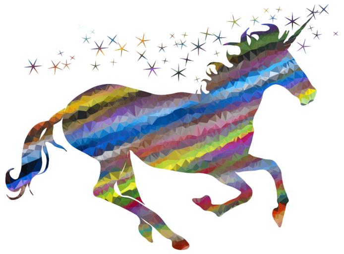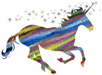Keywords: colorful prismatic chromatic rainbow low poly polygon triangles abstract geometric art unicorn horse animal mythical fictional creature vector svg