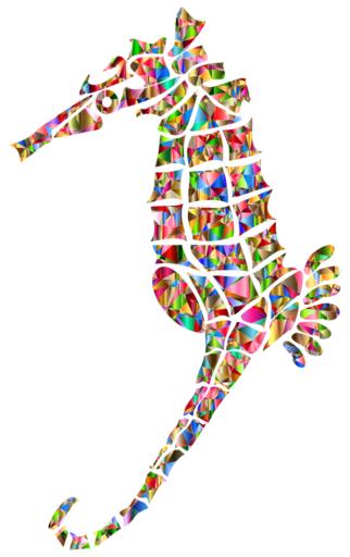 Keywords: colorful prismatic chromatic rainbow triangles low poly polygon abstract geometric art seahorse animal marine wildlife swim ocean water sea