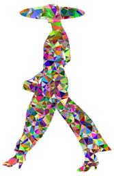 Keywords: colorful prismatic chromatic rainbow triangles low poly polygon abstract geometric art woman walking female fashion lady