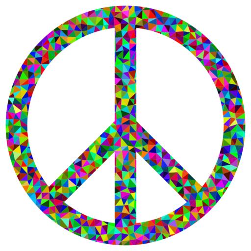 Keywords: colorful prismatic chromatic rainbow triangles triangular low poly polygon abstract geometric art peace sign symbol