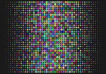 | Keywords: geometry circles color colour colors colours julia code indoor texture pattern While testing a few lines of code that produce spiky wheel shapes, I started chasing the limits of how many could be produced. I wonder if any are duplicates? Each one can encode six colours and 3 different selections of between 3 and 16 spokes, so there are about two billion different possibilities. While testing a few lines of code that produce spiky wheel shapes, I started chasing the limits of how many could be produced. I wonder if any are duplicates? Each one can encode six colours and 3 different selections of between 3 and 16 spokes, so there are about two billion different possibilities. |