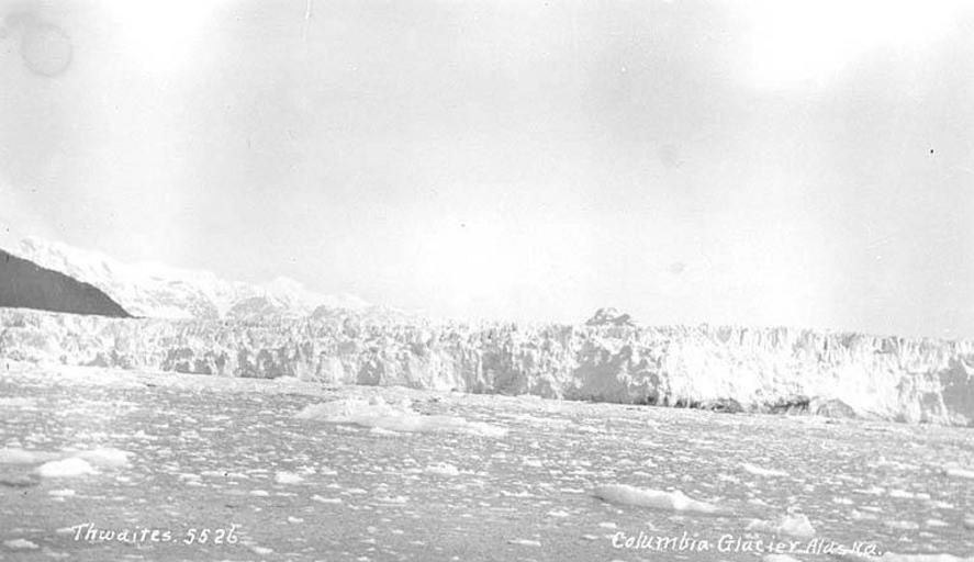 | Keywords: Columbia Glacier, ca 1912 (THWAITES 285).jpeg check categories 27 October 2016 1 Photograph Creator John E Thwaites Caption on image Columbia Glacier Alaska PH Coll 247 749<br/>The Columbia Glacier is one of Alaska's better known tidewater glaciers -- those that empty directly into the sea -- both from the standpoint of tourist attraction and the model it provides for scientific investigation In 1973 it became the object of close scientific scrutiny Located about 40 kilometers 25 miles west of Valdez near the epicenter of the great 1964 earthquake it is rapidly losing its battle for survival It is the last of Alaska's 52 tidewater glaciers to begin its epic retreat from the sea Glaciers typically follow a seasonal pattern of advance and retreat During the late summer months tidewater glaciers erode on the seaward edge by calving but if the amount of ice lost is replenished during the winter and early spring months the glacier remains stable Scientists have reported that Columbia Glacier will be reduced to about half its present size in the next 30 to 50 years and that its terminus will have moved about 40 kilometers up the valley in which it lies This is an astonishing rate of disintegration Columbia Glacier moves toward the sea at the rate of about one to three kilometers per year about a mile along its center line and roughly twice that fast along the edges where the ice is thinner In order for the leading edge to actually move backward therefore the calving rate in the later months of the year must be phenomenal It is now known that Columbia Glacier is unlikely though it sounds moving backward into ever-deeper water Once the instability is triggered the process of self-destruction feeds upon itself In the late 1970s the water at the glacier's face was 56 feet deep Now it is nearly 1000 feet deep and icebergs almost as tall and weighing as much as a million tons are breaking off Generally these mammoth ice cubes are trapped by the pile of rocks that the glacier has already shoved ahead They remain there until they break up into smaller bergs which head out to sea on their own posing collision threats to oil tankers and other shipping in Valdez Arm Subjects LCTGM Columbia Glacier Alaska ; Glaciers--Alaska depicted place Columbia Glacier ca 1912 Institution University of Washington UWASH-THWAITES-source accession number thwaites 285 PD-old-auto-1923 1940 Information field Order Number THW336 Images from the John E Thwaites Photographs of Alaska Collection to check Columbia Glacier |