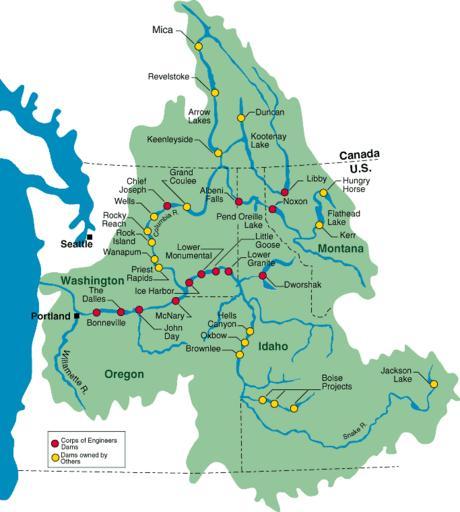 Keywords: Columbia.png Maps of dams drainage and estuaries along the Columbia River in North America USA Canada Original caption The Columbia River carved the Interior Columbia River Basin from the landscape of seven Western states and two Canadian provinces The river itself flows from its headwaters in British Columbia Canada through only two states forming part of the Washington-Oregon border the vast Interior Columbia River Basin is defined by the area drained by the river and its many tributaries This 58-million-hectare area about the size of France extends roughly from the crest of the Cascade Mountains of Oregon and Washington east through Idaho to the Continental Divide in the Rocky Mountains of Montana and Wyoming and from the headwaters of the Columbia River in Canada to the high desert of northern Nevada and northwestern Utah Primary Source U S Army Corps of Engineers North Pacific Region http //www nwd-wc usace army mil/report/colmap htm Secondary source http //en wikipedia org/wiki/Image Columbia png U S Government PD-USGov Columbia River Basin Maps of rivers of Canada Columbia Maps of rivers of the Western United States Columbia Uploads by Mattes from external sources de Bild Columbia png fi Kuva Columbia png |
