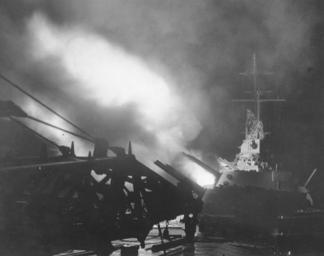 Keywords: ColumbiaShortlands.jpg Photo 80-G-44058 Shortland Islands Bombardment 1 November 1943 After 6 /47 gun turrets of USS Columbia CL-56 firing during the night bombardment of Japanese facilities in the Shortlands that covered landings on Bougainville This photograph has been rather crudely retouched to eliminate radar antennas on gun directors and masthead Official U S Navy Photograph now in the collections of the National Archives http //www history navy mil/photos/sh-usn/usnsh-c/cl56 htm Removed caption read Photo 80-G-44058 USS Columbia bombarding the Shortland Islands 1 November 1943 PD-USGov Battle of Empress Augusta Bay Firing naval artillery USS Columbia CL-56 |