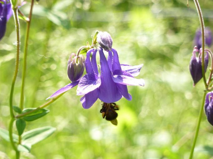 Keywords: columbine flower violet bee spring nature purple petal plant garden