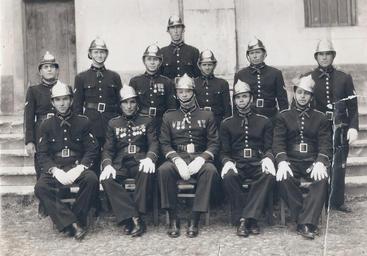 Keywords: Comandante Arnaldo Moreira entre seu Estado-Maior..jpg pt Foto do comandante dos Bombeiros Voluntários de Beja com seu Estado-Maior Foto de família Arquivo do Corpo de Bombeiros Voluntários de Beja 1952 Foto de família minha responsabilidade Não há outras versões Beja People in 1952 Firefighters of Portugal History of firefighting in Portugal |