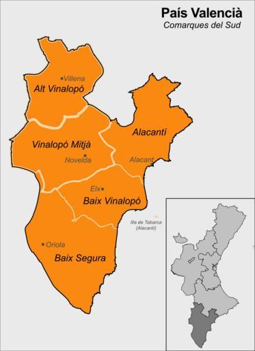 Keywords: Comarques del sud.svg ca Comarques del sud del País Valencià own Mutxamel 2008-09-23 Maps of comarques of the Land of Valencia