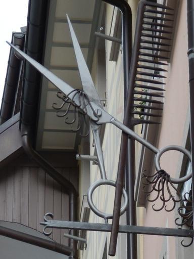 Keywords: comb scissors wrought iron symbol note barber beauty shop hairdresser