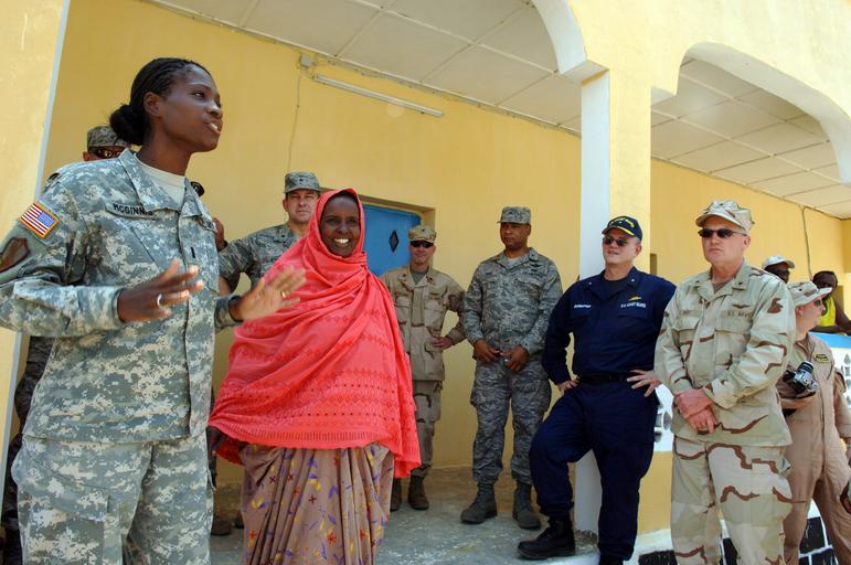 Keywords: Combined Joint Task Force-Horn of Africa DVIDS53801.jpg en U S Army 1st Lt Cassandra McGinnis explains the mission and accomplishments of the 1132nd Well Drillers at the Assamo well drilling site and primary school to flag officers attending the 2007 Capstone course and visiting the Combined Joint Task Force-Horn of Africa area of responsibility in Djibouti The objective of the Capstone course is to make newly selected flag officers more effective in planning and employing U S Forces in unified joint and multi-national operations and more knowledgeable of when and how these operations support national strategy and policy CJTF-HOA conducts unified action in the Combined Joint Operations Area-Horn of Africa to prevent conflict promote regional stability and protect coalition interests in order to prevail against extremism 2007-08-08 https //www dvidshub net/image/53801 070808-N-+++++-096 2007-08-15 12 52 DJIBOUTI DJ PD-USGov-Military-Navy Combined Joint Task Force - Horn of Africa Images from DoD uploaded by Fæ |