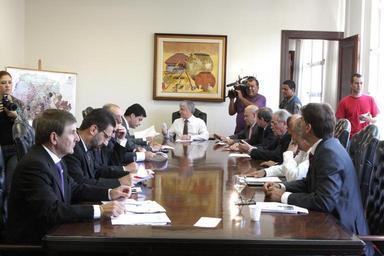 Keywords: indoor O presidente da Assembleia Legislativa, deputado Valdir Rossoni, saiu da reunião com líderes de bancadas e blocos, da oposição e do governo, hoje (08), comemorando o apoio e a receptividade dos colegas às mudanças administrativas em andamento e às que se encontram ainda em estudos pela Mesa Executiva. Durante a reunião foi discutido a composição das comissões técnicas permanentes. Rossoni acredita que até segunda-feira (14/02) a situação esteja definida: “Se não houver acordo – e a experiência nos mostra que não se consegue acordo em todos os casos - teremos que resolver através do voto”, observou. O registro de presença dos deputados em plenário foi outro tema levantado. Segundo Rossoni, o parlamentar terá sua presença registrada ao entrar no plenário. Quando o último orador estiver na tribuna, o placar será zerado e terá início a chamada para as votações. Para não ser punido com descontos no salário, o deputado terá que registrar presença nas duas ocasiões. Gabinetes - A estrutura dos gabinetes parlamentares também foi abordada na reunião matinal. Um novo “layout”, com a intenção de assegurar a maior igualdade possível de acomodação à todos, será submetido à apreciação do plenário nos próximos dias. Foto: Nani Gois / Assembleia Legislativa do Paraná O presidente da Assembleia Legislativa, deputado Valdir Rossoni, saiu da reunião com líderes de bancadas e blocos, da oposição e do governo, hoje (08), comemorando o apoio e a receptividade dos colegas às mudanças administrativas em andamento e às que se encontram ainda em estudos pela Mesa Executiva. Durante a reunião foi discutido a composição das comissões técnicas permanentes. Rossoni acredita que até segunda-feira (14/02) a situação esteja definida: “Se não houver acordo – e a experiência nos mostra que não se consegue acordo em todos os casos - teremos que resolver através do voto”, observou. O registro de presença dos deputados em plenário foi outro tema levantado. Segundo Rossoni, o parlamentar terá sua presença registrada ao entrar no plenário. Quando o último orador estiver na tribuna, o placar será zerado e terá início a chamada para as votações. Para não ser punido com descontos no salário, o deputado terá que registrar presença nas duas ocasiões. Gabinetes - A estrutura dos gabinetes parlamentares também foi abordada na reunião matinal. Um novo “layout”, com a intenção de assegurar a maior igualdade possível de acomodação à todos, será submetido à apreciação do plenário nos próximos dias. Foto: Nani Gois / Assembleia Legislativa do Paraná |