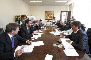 Keywords: indoor O presidente da Assembleia Legislativa, deputado Valdir Rossoni, saiu da reunião com líderes de bancadas e blocos, da oposição e do governo, hoje (08), comemorando o apoio e a receptividade dos colegas às mudanças administrativas em andamento e às que se encontram ainda em estudos pela Mesa Executiva. Durante a reunião foi discutido a composição das comissões técnicas permanentes. Rossoni acredita que até segunda-feira (14/02) a situação esteja definida: “Se não houver acordo – e a experiência nos mostra que não se consegue acordo em todos os casos - teremos que resolver através do voto”, observou. O registro de presença dos deputados em plenário foi outro tema levantado. Segundo Rossoni, o parlamentar terá sua presença registrada ao entrar no plenário. Quando o último orador estiver na tribuna, o placar será zerado e terá início a chamada para as votações. Para não ser punido com descontos no salário, o deputado terá que registrar presença nas duas ocasiões. Gabinetes - A estrutura dos gabinetes parlamentares também foi abordada na reunião matinal. Um novo “layout”, com a intenção de assegurar a maior igualdade possível de acomodação à todos, será submetido à apreciação do plenário nos próximos dias. Foto: Nani Gois / Assembleia Legislativa do Paraná O presidente da Assembleia Legislativa, deputado Valdir Rossoni, saiu da reunião com líderes de bancadas e blocos, da oposição e do governo, hoje (08), comemorando o apoio e a receptividade dos colegas às mudanças administrativas em andamento e às que se encontram ainda em estudos pela Mesa Executiva. Durante a reunião foi discutido a composição das comissões técnicas permanentes. Rossoni acredita que até segunda-feira (14/02) a situação esteja definida: “Se não houver acordo – e a experiência nos mostra que não se consegue acordo em todos os casos - teremos que resolver através do voto”, observou. O registro de presença dos deputados em plenário foi outro tema levantado. Segundo Rossoni, o parlamentar terá sua presença registrada ao entrar no plenário. Quando o último orador estiver na tribuna, o placar será zerado e terá início a chamada para as votações. Para não ser punido com descontos no salário, o deputado terá que registrar presença nas duas ocasiões. Gabinetes - A estrutura dos gabinetes parlamentares também foi abordada na reunião matinal. Um novo “layout”, com a intenção de assegurar a maior igualdade possível de acomodação à todos, será submetido à apreciação do plenário nos próximos dias. Foto: Nani Gois / Assembleia Legislativa do Paraná |