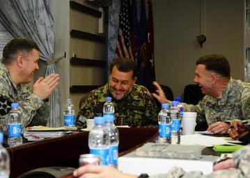Keywords: Command Leadership meeting (4681178425).jpg KABUL Afghanistan - General Bismillah Khan Mohammadi Afghan National Army Chief of General Staff center shares a laugh with U S Army Brig Gen Gary Patton left NATO Training Mission - Afghanistan NTM-A deputy commanding general programs and Lt Gen William B Caldwell IV right Commander NATO Training Mission-Afghanistan and Commanding General Combined Security Transition Command “ Afghanistan during a recent visit to Camp Eggers Afghanistan The NTM-A / CSTC-A in coordination with NATO Allies partners and key Afghan stakeholders generates the Afghan National Security Forces develops capable ministerial systems and resources the fielded force to build sustainable capacity and capability in order to enhance the Government of the Islamic Republic of Afghanistan ™s ability to achieve stability and security in Afghanistan U S Navy photo by Mass Communication Specialist 3rd Class Kirk Putnam/RELEASED http //www flickr com/photos/ntm-a_cstc-a/4681178425/ Command Leadership meeting Uploaded by russavia 2010-06-08 10 48 http //www flickr com/people/44825691 N08 NATO Training Mission-Afghanistan Mass Communication Specialist 3rd Class Kirk Putnam/Mass Communication Specialist 3rd Class Kirk Putnam U S Navy photo PD-USGov-Military-Navy File Upload Bot Magnus Manske 2013-07-13 Files from NATO Training Mission-Afghanistan Flickr stream Afghanistan photos from Flickr check needed Gary S Patton Bismillah Khan Mohammadi in 2010 William B Caldwell IV |