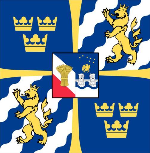 Keywords: Commandsign King of Sweden.svg Personal Command Sign of the King of Sweden svg en The personal command sign of H M the King of Sweden The Royal Command Flag was introduced by a Regulation of 1943 The banner - it is officially termed His Majesty's Personal Command Banner - is a one-of-a-kind sort only There is only one copy existing a piece of craftsmanship created by Einar Kedja a renowned Swedish heraldic artist The cloth is permanently attached to a pole with a crown serving as finial sv Kungens personliga kommandoflagga Own Koyos 2009-03-25 <gallery>File Sweden-commandsign-king png</gallery> Carl XVI Gustaf of Sweden Royal standards of Sweden Heraldic standards Heraldic banners Flags with lions facing left Flags with three crowns Marshalled lion of Bjelbo Per pale Bernadotte and Vasa