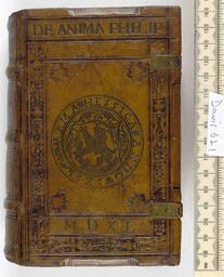 Keywords: Commentarius de anima - Upper cover (Davis621).jpg Style Armorial Dated Lettered cover eg intitals titles; Caption Upper cover; Colour Brown; Edge Unspecified exhibition history Decorative Technique Tooled in blind Tooled in silver; Cover Material Calf Wooden boards Partly bevelled edges Remnants of two brass clasps on leather thongs The endleaves have a Breslau watermark object history Text 1539; Leipzig; Hess Johann object type Cc-zero place of creation Binding Germany place of discovery See M M Foot The Henry Davis Gift vol II London 1983 British Library image http //www bl uk/catalogues/bookbindings/LargeImage aspx RecordId 020-000004578 ImageId ImageId 41894 Copyright BL Commentarius de anima Uploaded with GWToolset Commentarius de anima - Upper cover Davis621 http //www webarchive org uk/bldatasets/bindings/6469_4 jpg Bookbinding 16th-century bookbinding British Library Bookbindings |