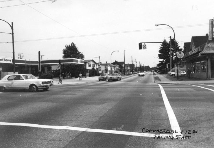 Keywords: blackandwhite monochrome outdoor road intersection black and white East 12th Avenue looking east at Commercial Drive circa-1980. [City of Vancouver Archives photo] East 12th Avenue looking east at Commercial Drive circa-1980. [City of Vancouver Archives photo] |