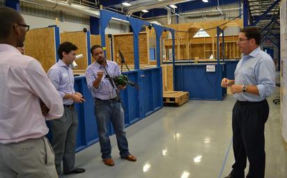 Keywords: Committee on Commerce, Science, and Transportation Tour -3 (9576746789).jpg Adam Jacoff Right of the NIST Engineering Lab Intelligent Systems Division briefs staffers from the Senate Committee on Commerce Science and Transportation on standard test methods research to measure robot mobility/maneuvering manipulation energy/power sensing radio communication human-robot interaction logistics and safety in the new NIST Robotic Test Facility Credit NIST/A Eustis Disclaimer Any mention of commercial products within NIST web pages is for information only; it does not imply recommendation or endorsement by NIST Use of NIST Information These World Wide Web pages are provided as a public service by the National Institute of Standards and Technology NIST With the exception of material marked as copyrighted information presented on these pages is considered public information and may be distributed or copied Use of appropriate byline/photo/image credits is requested https //www flickr com/photos/usnistgov/9576746789/ Committee on Commerce Science and Transportation Tour 3 2013-08-13 08 49 https //www flickr com/people/63059536 N06 National Institute of Standards and Technology PD-USGov National Institute of Standards and Technology https //flickr com/photos/63059536 N06/9576746789 2016-09-07 01 50 47 United States Government Work Uncategorized 2016 December 21 |