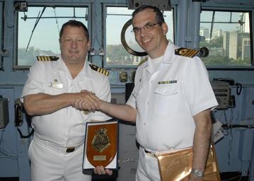 Keywords: Commodore's Breakfast 090714-N-DW912-018.jpg en Capt Jeferson Scofield commanding officer Rio De Janeiro right presents Capt Brad Williamson commodore Destroyer Squadron TWO with a plaque during Commodore's Breakfast held in the pilot house aboard USS Oak Hill LSD 51 July 14 2009 Oak Hill is participating in a combined multinational exercise Southern Partnership Station SPS '09 SPS '09 is a combined naval and amphibious operation with Oak Hill and maritime forces from Argentina Brazil Chile Peru and Uruguay Oak Hill is also supporting U S Marine Corps Forces South Multinational Amphibious exercise Southern Exchange 2009 U S Navy Photo by Mass Communication 3rd Class Cory Rose/Released 2009-07-14 Petty Officer 2nd Class Cory Rose https //www dvidshub net/image/1583960 090714-N-DW912-018 2014-09-29 17 24 RIO DE JANEIRO BR PD-USGov-Military-Navy USS Oak Hill LSD-51 Images from DoD uploaded by Fæ |