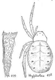Keywords: Common Spiders U.S. 498-9 Hyptiotes cavatus.png en Hyptiotes cavatus ”498 female enlarged eight times 499 end of hind leg showing calamistrum 1902 The Common Spiders of the United States Ginn Company Boston 1902 James Henry Emerton 1847 “ 1931 other versions PD-old-70-1923 The Common Spiders of the United States Uploaded with UploadWizard Hyptiotes cavatus |