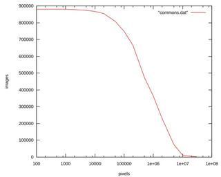 Keywords: Commons stats October 2006.svg x size of the image in pixels warning a few SVG images have very large pixel sizes log scale y number of images greater than this size Wikimedia statistics