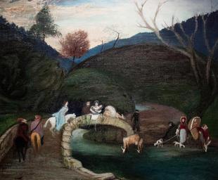 Keywords: Company Passing over a Bridge, c 1903.jpg Artwork Creator Tivadar Csontváry Kosztka ~ 1896 oil on canvas in collaboration with Virag Judit Gallery Budapest object history credit line own photo by Szilas Other versions Commonist PD-old-70 1919 Paintings by Tivadar Csontváry Kosztka 20th-century oil on canvas paintings in Hungary |