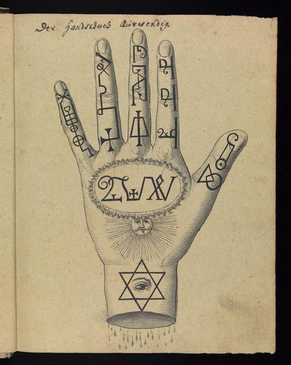 | Keywords: public domain collage fodder demonology magic text writing sketch drawing monochrome Public Domain: Compendium rarissimum totius Artis Magicae sistematisatae per celeberrimos Artis hujus Magistros. Anno 1057. Noli me tangere In German and Latin. On white, brown and grey-green paper. The title within an ornamental border in wash, with skulls, skeletons and cross-bones. Illustrated with 31 extraordinary water-colour drawings of demons, and three pages of magical and cabbalistic signs and sigils, etc. At the end the figures are in red, and part of the text is written in white on the grey-green paper. Public Domain: Compendium rarissimum totius Artis Magicae sistematisatae per celeberrimos Artis hujus Magistros. Anno 1057. Noli me tangere In German and Latin. On white, brown and grey-green paper. The title within an ornamental border in wash, with skulls, skeletons and cross-bones. Illustrated with 31 extraordinary water-colour drawings of demons, and three pages of magical and cabbalistic signs and sigils, etc. At the end the figures are in red, and part of the text is written in white on the grey-green paper. |