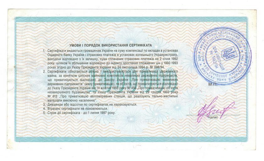 | Keywords: Compensation certificate 1b Ukraine 1994 reverse used.jpg Опис Компенсаційний се тифікат на суму індексації г ошових заощаджень г омадян Ук аїни в установах Ощадного банку Ук аїни і колишнього Ук де жст аху Ук аїна 1994/1995 ік омінал 1 мільйон ка бованців Вико истаний Зво отна сто она Авто Dghooo Дже ело з власного а хіву Час ство ення 31 10 2014 Ліцензія PD-UA-exempt Original upload log UWCTransferBot v 2 1 2 based on Chris G's http //toolserver org/~chris/highlight php d chris/classes/ f botclasses php botclasses framework uk wikipedia Compensation+certificate+1b+Ukraine+1994+reverse+used jpg 2014-10-31 19 41 Dghooo 2126×1295×8 1043706 bytes <nowiki> Зоб аження Опис Компенсаційний се тифікат на суму індексації г ошових заощаджень г омадян Ук аїни в установах Ощадного банку Ук аїни </nowiki> Finance Economy of Ukraine |