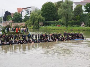 MAKE A MEME View Large Image competition start swim track and field athletes athletes triathlon danube ulm swimmer wetsuits people human