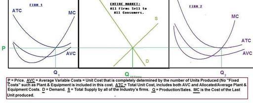Keywords: CompetitiveMarket-Wiki.jpg en Depicts Equilibrium and Economic Profit in a Competitive Market A Competitive Market has many firms who supply goods to a Market in which Consumers purchase these goods at the Market Price Firms and Consumers interact Buying and selling in the Market and this interaction establishes a Market Price that ensures Firms are not left with a Surplus they can't sell and there isn't a Scarcity of supply that prevents Consumers from buying exactly what they Demand at the given Price The Picture shows the Market for the Industry as well as 2 of the many Firms that supply the Market The Picture of the 2 Firms shown here are used only as an example of the individual Firms that supply a Competitive Market and how they fit within the Market Mgmwki - From Various Micro Economics Classes - General Knowledge in Economics show in every beginning level Micro Class Mgmwki - example of a text book that contains this is noted<Ref Name MicroEcon_MathApproach >Henderson James M and Richard E Quandt Micro Economic Theory A Mathematical Approach 3rd Edition New York McGraw-Hill Book Company 1980 Glenview Illinois Scott Foresmand and Company 1988 </ref> 2011-01-10 This is considered General Knowledge amongst all Economists - In Economics Classes in College You can Find this in various forms in any Micro Economics Text Book Journal Article You may Find various representations of the same thing in various Micro Economics Books This includes both Graduate Level and Undergraduate Level books as well as some very popular books like the 'Economics for Dummies' book s <Ref Name Essentials >Bradley R chiller Essentials of Economics New York McGraw-Hill Inc 1991 </ref> <Ref Name MicroTheory >Edwin Mansfield Micro-Economics Theory and Applications 3rd Edition New York and London W W Norton and Company 1979 </ref> <Ref Name IntermediateMicro >Roger LeRoy Miller Intermediate Microeconomics Theory Issues Applications Third Edition New York McGraw-Hill Inc 1982 </ref> <Ref Name MicroEcon_MathApproach >Henderson James M and Richard E Quandt Micro Economic Theory A Mathematical Approach 3rd Edition New York McGraw-Hill Book Company 1980 Glenview Illinois Scott Foresmand and Company 1988 </ref> References <references/> Economic diagrams |